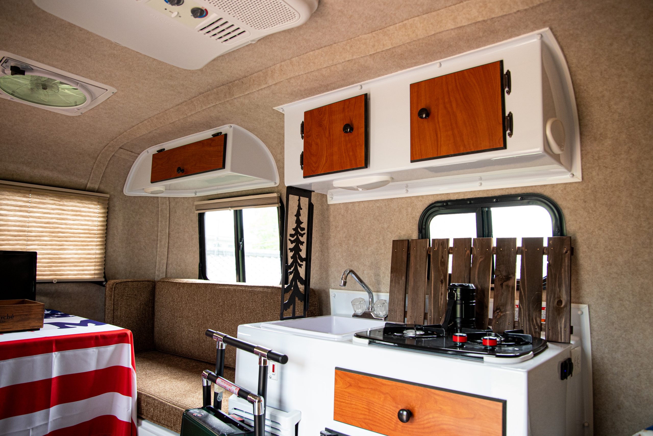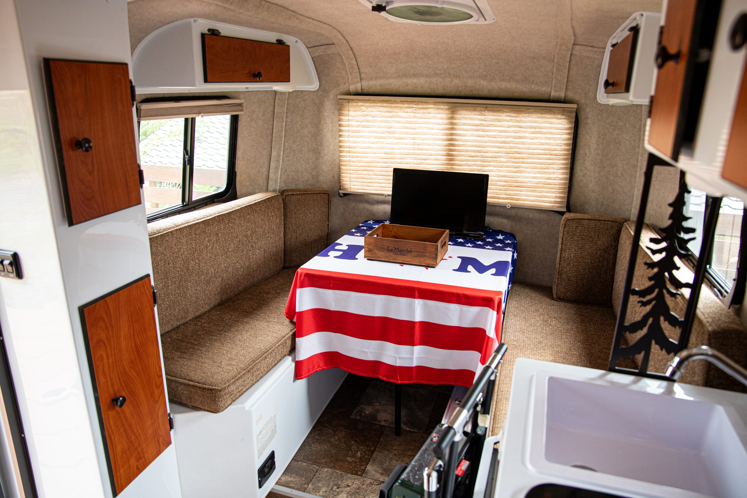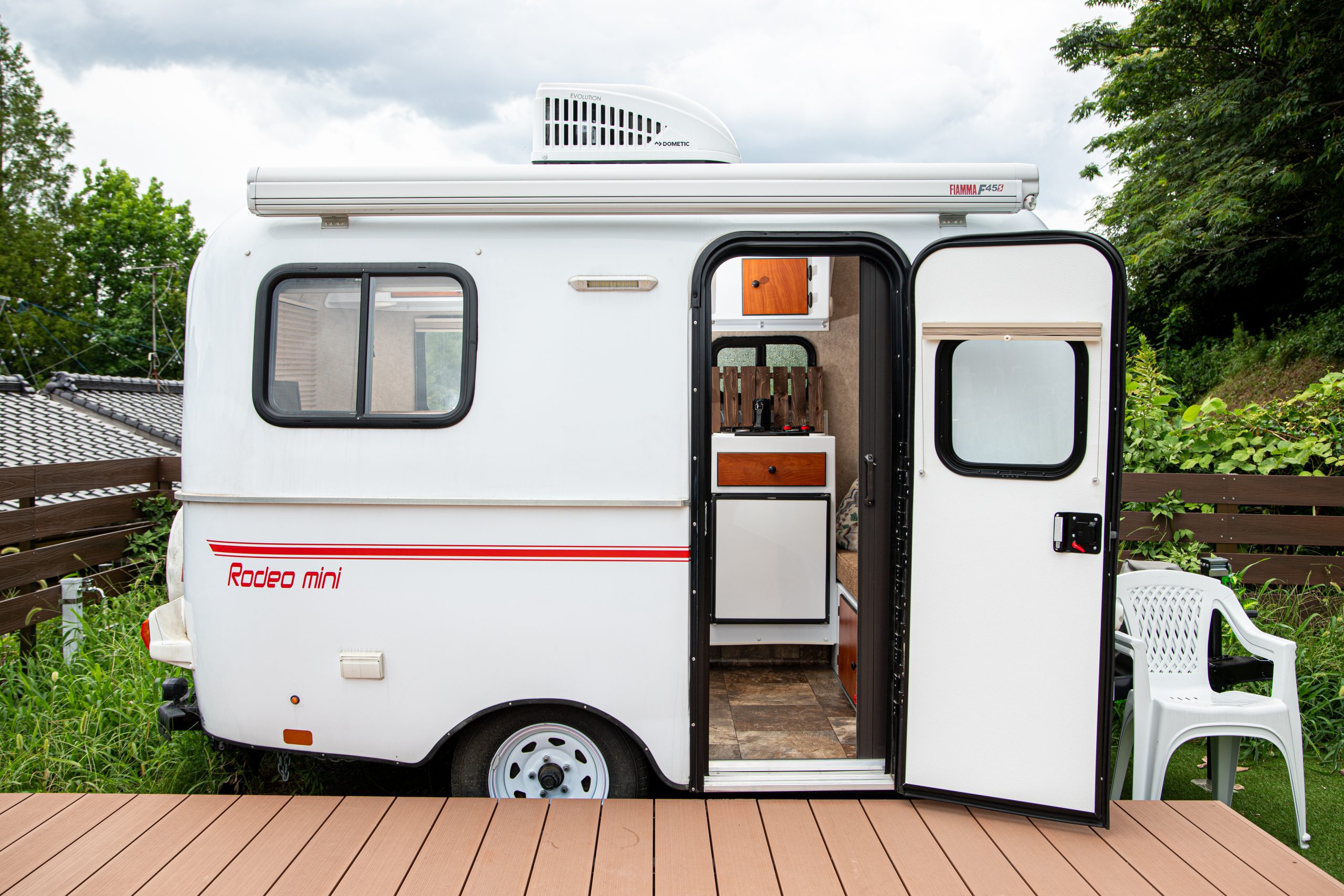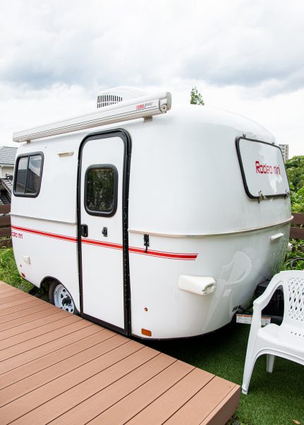隣接地には車中泊が楽しめるキャンピングトレーラーもある。