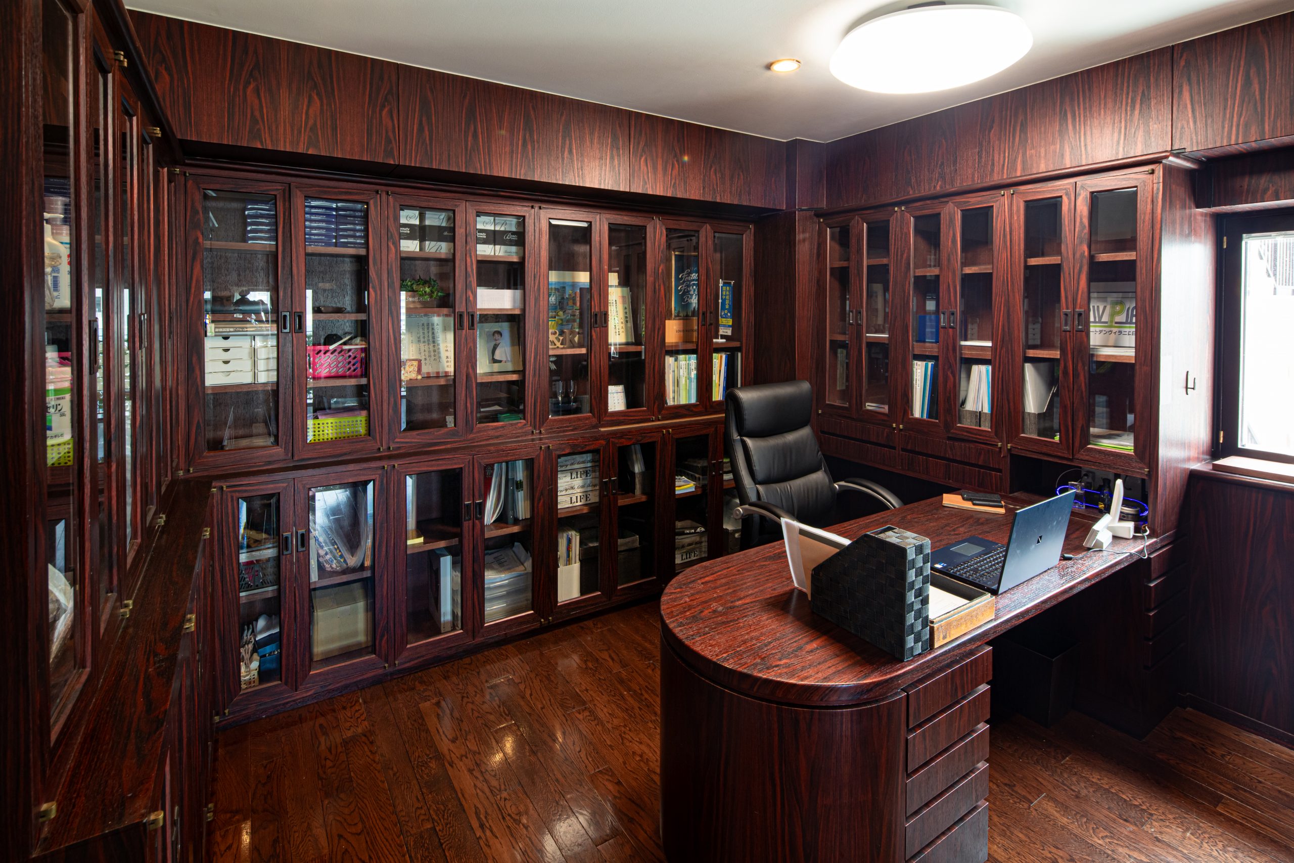 レトロな佇まいで味のある書棚や、かつてダンスレッスンに