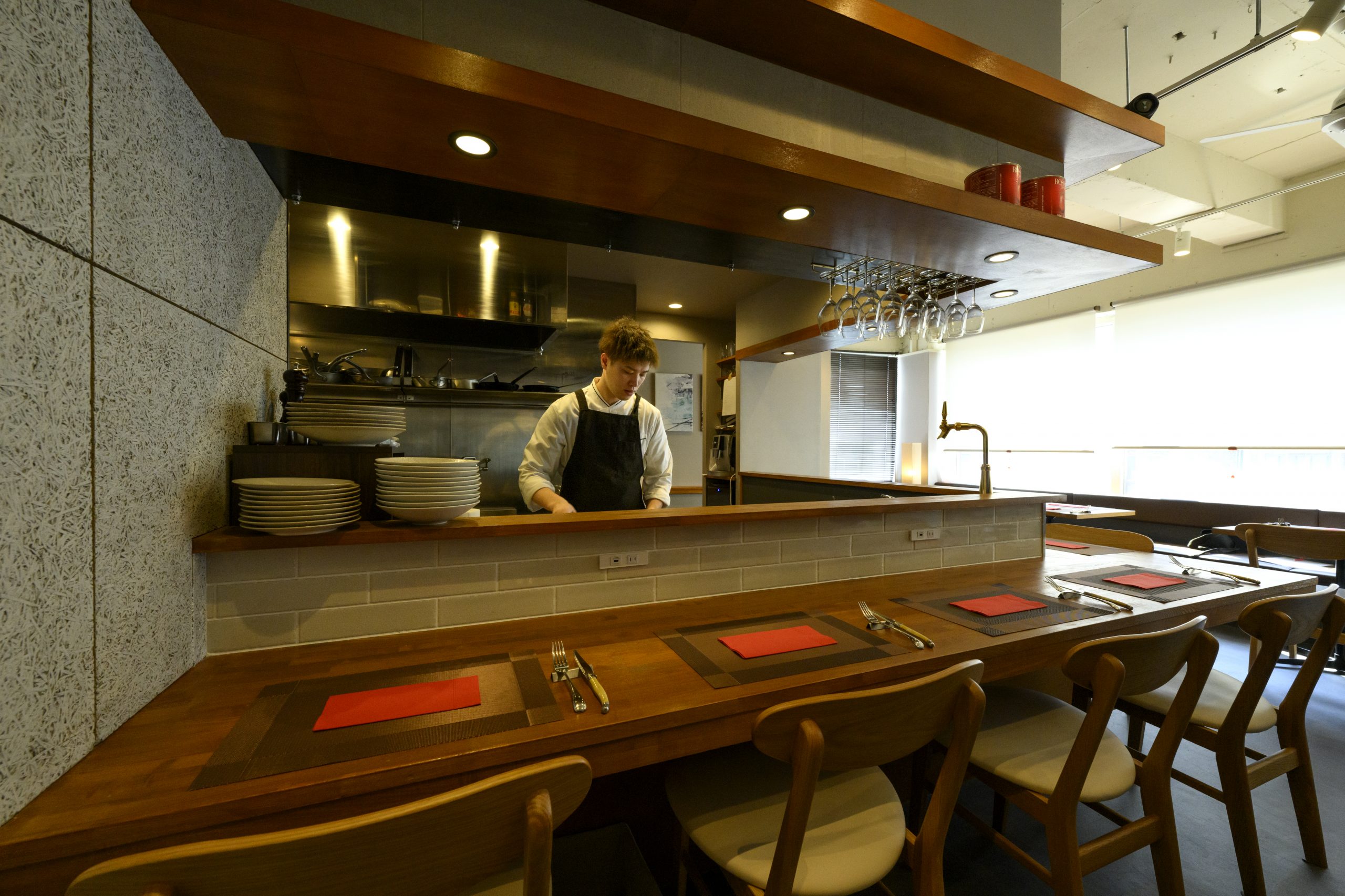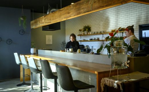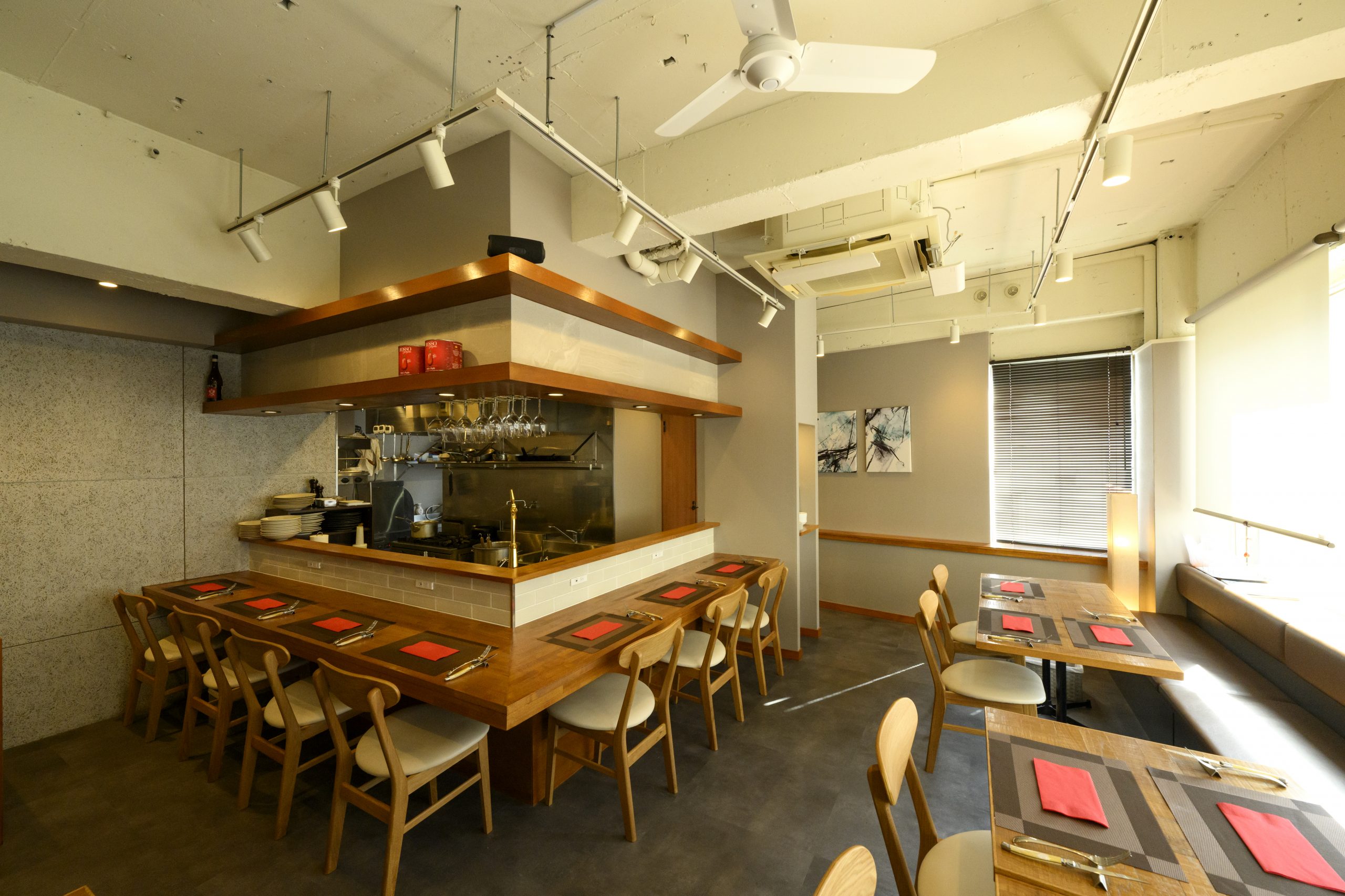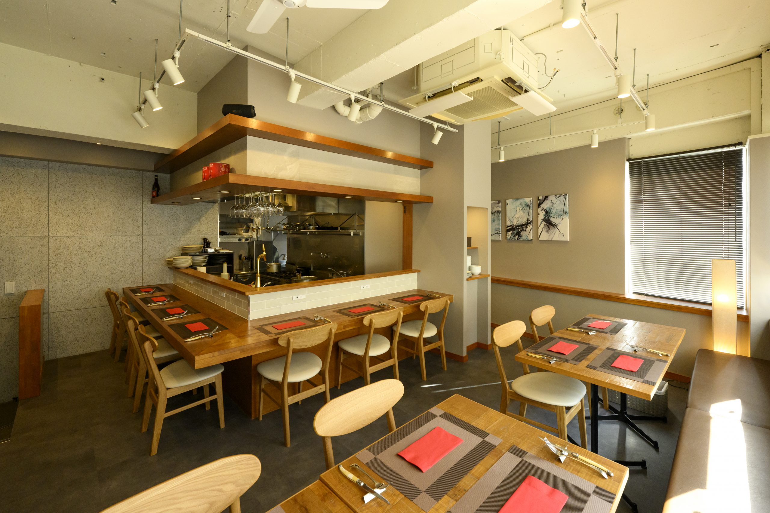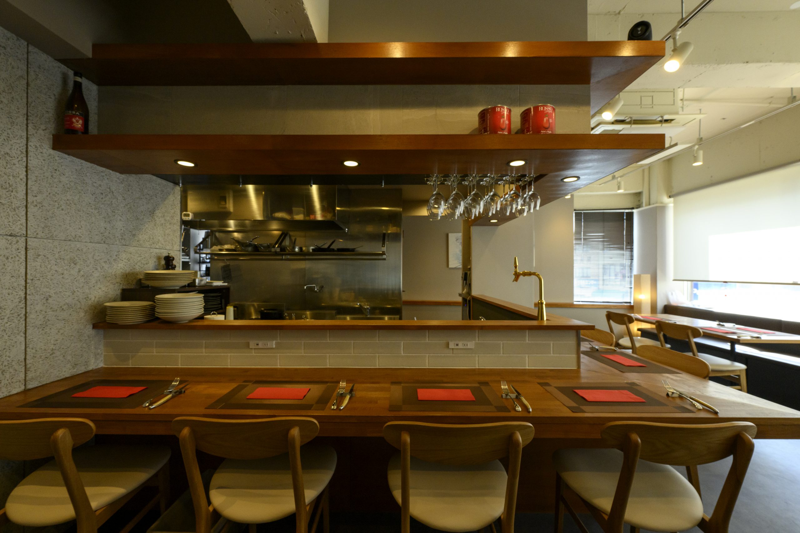 テーブル席とカウンター席の椅子の高さは同じに。